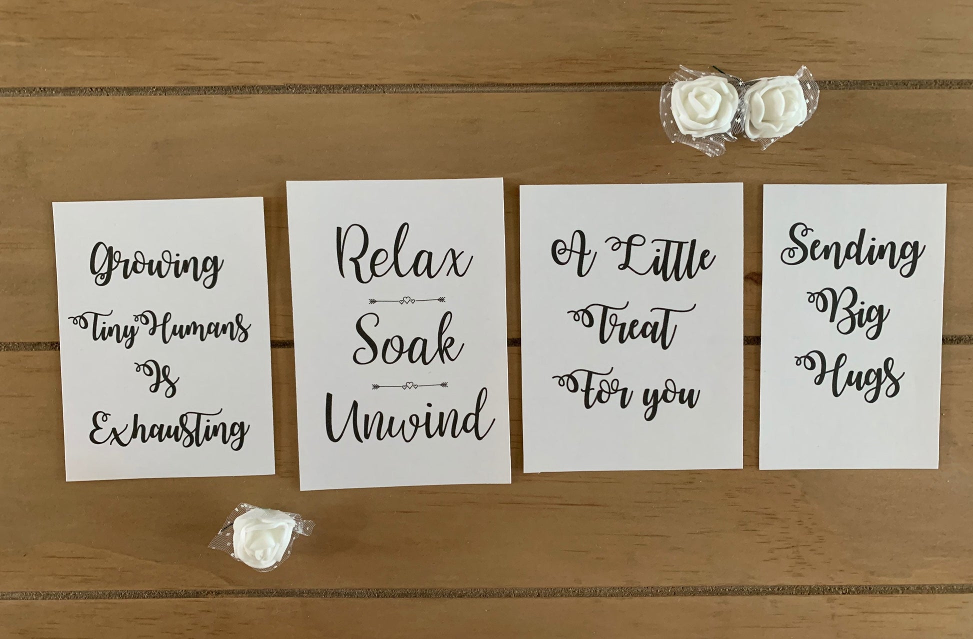 🌸relax soak unwind print to either the box or as a smaller sized gift note if one is required. If you require a different design as shown in the image for a gift note please message.