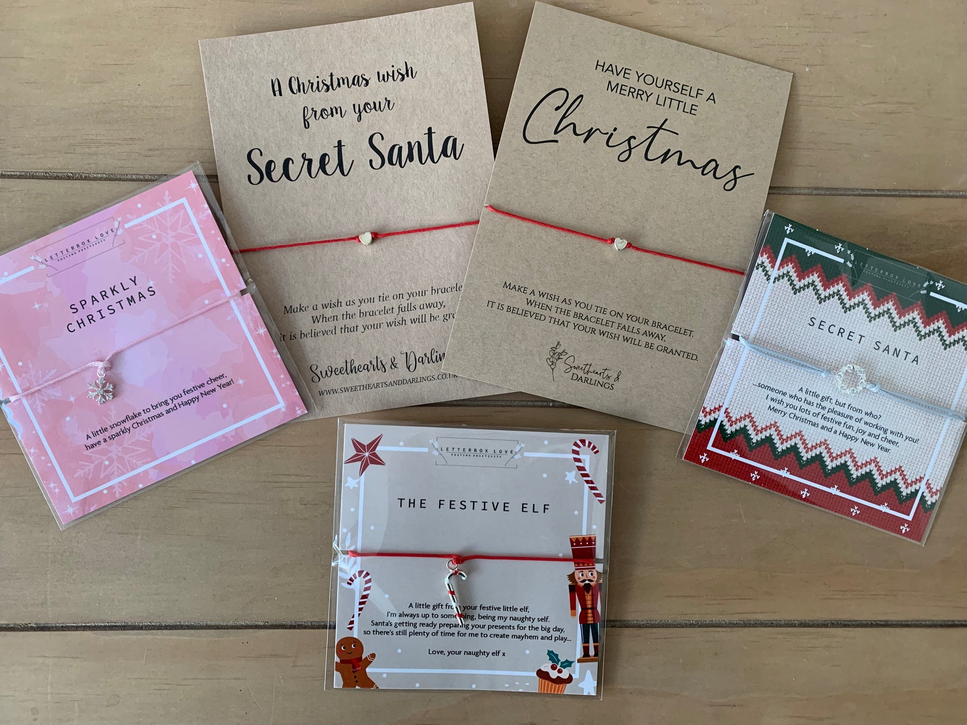 We will add the 'Warmest christmas wishes' print to the backboard of all boxes unless asked otherwise. We will use a little treat for you for the gift note unless specified otherwise.